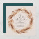 Invitación bodas bohemias de pampas de hierba bohemia bohemia natural moderna. Impresionante texto elegante de guión y en follaje botánico de tendencia. Color de acento verde azulado moderno.