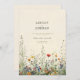 Esta elegante invitación de boda presenta un delicado fondo crema adornado con una exquisita variedad de flores silvestres. Suaves tonos de rosa rubor, lavanda suave y verdes apagados crean un ambiente caprichoso y romántico. Las flores silvestres están artísticamente dispuestas alrededor de los bordes, enmarcando el texto con un toque natural y encantador.