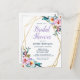 Suaves flores acuarela boho de lavanda dentro de un doble marco geométrico dorado presentan colores de lavanda, blanco y florituras botánicas y de plumas. Personalice esta tarjeta postal de invitación de boda con sus propios colores y fuentes o mantenga esta tipografía popular tal como está para su conveniencia.