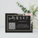 La invitación de boda boho floral rosa y negro con RSVP presenta grandes flores rosadas, blancas y beige. Esta es la invitación de boda perfecta para cualquier temporada debido a su elegancia y estilo. Totalmente personalizable. El negro y el dorado falso son muy elegantes con los elementos florales rosados. Es un look atemporal y moderno. Encuentre productos coincidentes en la colección.