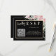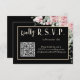 La invitación de boda boho floral rosa y negro RSVP cuenta con grandes flores rosadas, blancas y beige. Esta es la invitación de boda perfecta para cualquier temporada debido a su elegancia y estilo. Totalmente personalizable. El negro y el dorado falso son muy elegantes con los elementos florales rosados. Es un look atemporal y moderno. Encuentra productos coincidentes en la colección.