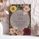 Celebra tu amor con esta invitación de boda boho floreada que presenta una mezcla rústica de flores pintadas a mano, incluyendo girasoles, rosas burgundy y rosadas, y follaje suave. Situada en un fondo rico con un marco circular de color taupe elegante, este diseño es ideal para bodas románticas de otoño en un entorno campestre o de jardín. Una invitación audaz y alegre para parejas de espíritu libre que aman los detalles botánicos vibrantes.
