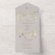 Simplifica la papelería de tu boda con esta elegante invitación de otoño todo en uno. Con delicadas flores silvestres en tonos dorados cálidos, un fondo de marfil suave y letra elegante, es la combinación perfecta de encanto rústico y romance boho moderno. Incluye espacio para RSVP y preferencias de comida: ¡solo sella y envía!