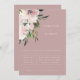 Diseño de tipografía chic y simple, invitación de boda que presenta ramos florales de acuarela en tonos de malva con follaje fluido. El color de fondo que se muestra en malva polvoriento, se puede personalizar.
