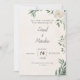 Celebre su día especial con esta invitación de boda botánica verde minimalista, que presenta un verde suave a la acuarela, flores blancas delicadas y un fondo de crema limpio. El diseño elegante y aireado crea una atmósfera tranquila y romántica, perfecta para bodas modernas, clásicas, de jardín o inspiradas en la naturaleza.