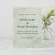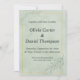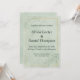 Elegante invitación de boda botánica verde salvia con delicadas flores de eucalipto y un marco dorado refinado.