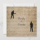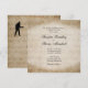 Un diseño hermoso para una boda con tema musical. Ponga los nombres de los niños en la parte frontal haciéndolo menos formal y en el interior la información de la boda regular o habitual. El tono sepia da a esta elegante partitura llena de notas y aspecto antiguo.