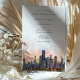 Anuncia tu próxima boda con esta sofisticada invitación, que presenta el icónico horizonte de Chicago, Illinois. La tarjeta muestra una impresionante ilustración en acuarela de la famosa arquitectura de Chicago, bellamente representada con los tonos serenos del amanecer o el atardecer. Las elegantes fuentes serif y script en terracota cálida y dorado apagado añaden un toque de estilo moderno. Perfecta para parejas que planean una boda urbana contemporánea, esta invitación combina el encanto del horizonte de Chicago con un refinado estilo artístico.