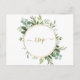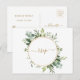 Esta tarjeta postal de invitación de boda cuenta con eucalipto de acuarela pintada, follaje verde y un marco de círculo dorado. Para una personalización más avanzada de este diseño, haga clic en el enlace "Personalizar más". También están disponibles artículos coincidentes. >>> https://www.zazzle.com/collections/botanical_gold_greenery_colleciton-119622753999789701