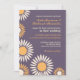 Invitación de boda con fondo púrpura y patrón de girasoles blancos y amarillos. ¿Estás planeando una boda en primavera o verano con hermosas flores por todas partes? Entonces, quizás esta sea la tarjeta perfecta para ti. Personaliza el texto y las fuentes para que se ajusten a tu gusto. Visita mi tienda para ver más variaciones de este diseño en tarjeta de "Save the Date", etiqueta de dirección y más.
