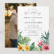 Esta elegante invitación de boda con acuarela de flores tropicales se puede personalizar con su información en tipografía elegante y una foto especial en el reverso. Diseñada por Thisisnotme©