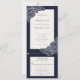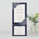 Combinación de invitación de boda con amapolas blancas dibujadas a mano sobre fondo texturizado azul marino.