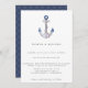 Hermosa invitación de boda con tema náutico con ancla con cuerda rústica a la acuarela y patrón de nudo náutico azul marino.