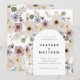 Elegante, moderna y perfecta para bodas de primavera y verano. Esta invitación de boda cuenta con impresionantes flores acuarelas boho chic pintadas a mano en tonos de crema, marfil, verde salvia, burgundy y azul polvoriento dispuestas alrededor de un arco boho de moda. La parte trasera incluye un patrón caprichoso coincidente. Encuentre productos adicionales en la Colección de Boda Floral Moderna Boho Chic.
