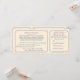 Esta bonita invitación de boda impresa al estilo de un antiguo boleto también incorpora una tarjeta de respuesta RSVP desmontable. El color de fondo es un crema pálido. Marcos simples de esquinas redondeadas en azul marino francés están acentuados con adornos ornamentales antiguos en rosa claro tenue. Los nombres de la novia y el novio junto con el encabezado de RSVP también están resaltados con decorativos motivos. En el reverso, la dirección de devolución se puede agregar al RSVP y más detalles de la boda a la parte de la invitación. La línea de corte para la tarjeta de respuesta se indica en la parte posterior de la invitación mediante una línea rota pálida y una imagen de tijeras.