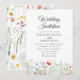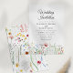 Esta refinada invitación de boda muestra detalladas flores silvestres en acuarela dispuestas a lo largo del borde inferior, elevándose suavemente hacia un fondo blanco limpio. La composición equilibrada y moderna destaca los detalles de su boda mientras mantiene un suave y romántico toque botánico.