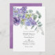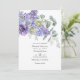 Invitación de boda de moda con hojas de eucalipto y plantas suculentas mezcladas con flores en acentos de lila pastel, púrpura y violeta. Ideal para cualquier tema o boda de jardín. El código QR en el reverso dirige a su sitio web de boda donde la gente puede obtener más información y responder.