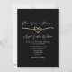 Combina la elegancia clásica con la comodidad moderna utilizando esta invitación de boda con código QR dorado y negro. Con un corazón de cuerda dorada romántico, un fondo negro elegante y una foto en el reverso, este diseño elegante permite a los invitados responder fácilmente a través del código QR. Personalízalo con tus datos y crea una experiencia de invitación sofisticada y sin contratiempos.