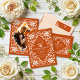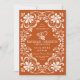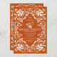 La invitación de boda presenta una obra de arte de acuarela de un marco floral blanco y un corazón romántico que simboliza el amor eterno y un fuerte vínculo que resiste las pruebas del tiempo. El fondo es de un cálido color naranja terroso. Es fácilmente personalizable e incluye un área de tarjeta de detalles para rellenar y un código QR escaneable en la parte posterior. Perfecto para una boda de otoño elegante de estilo vintage o bohemio moderno, así como para bodas en cualquier estación.