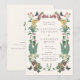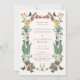 Elegante plantilla de invitación de boda con jardín o temática de verano con un marco hecho de ilustraciones botánicas de flores y mariposas. Código QR personalizado y texto adicional en la parte posterior - perfecto para mencionar su sitio web de boda o cualquier otra información para sus invitados de boda.