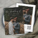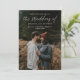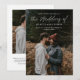 Invitación de boda con foto y código QR simple de letra moderna. La parte trasera tiene una foto adicional y detalles con código QR de RSVP. Haga clic en el botón de edición para personalizar este diseño según sus necesidades.