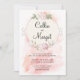 Invitación de boda con corona de flores rosadas
