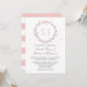 Invitación de boda de diseño clásico y rústico con monograma de novia y novio. Decorada con una corona floral rosa simple y minimalista. Pequeños capullos de flores y polvo volando. Perfecta para boda de primavera o invierno. Franja rosa en la parte posterior de la tarjeta. Puedes personalizar el texto para adaptarlo a cualquier ocasión, como fiesta de soltera, fiesta de compromiso, aniversario o cualquier celebración y evento romántico.