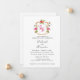 Elegante invitación de boda con cresta monogramada pintada a mano con acuarela con hermosas flores silvestres y vegetación. Perfecta para boda con tema de jardín de verano y primavera.