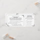 Esta invitación de boda impresa al estilo de un boleto antiguo también incorpora una tarjeta de respuesta RSVP desmontable. Los marcos simples redondeados están acentuados con florituras ornamentadas y vintage de hojas decorativas. Los nombres de la novia y el novio junto con el encabezado de RSVP también están resaltados con florituras decorativas. En el reverso, la dirección de devolución se puede agregar al RSVP y más detalles de la boda a la parte de la invitación. La línea de corte para la tarjeta de respuesta se indica en la parte posterior de la invitación mediante una línea rota pálida y una imagen de tijeras.