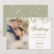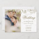 Una elegante invitación de boda que presenta delicadas flores de primavera enmarcando los detalles de su boda en elegante letra dorada. Personalice con los detalles de su evento especial y foto especial. El reverso presenta pétalos de flores blancas dispersos. Diseñado por Thisisnotme