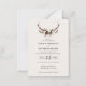 invitación de boda con flores rústicas y cuernos de ciervo con presupuesto. Con hermosos detalles de acuarela. Esta invitación de boda moderna seguro que marca el estilo para tu gran día.