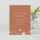 Establece el tono para tu gran día con esta hermosa Invitación de Boda de Flor Silvestre Bohemio de Terracota. Contra un fondo de terracota, las flores silvestres coloridas están dispuestas de una manera encantadora similar a un prado, evocando la belleza de la naturaleza y la libertad del aire libre. La fuente bohemio moderna complementa perfectamente el diseño caprichoso, lo que hace que esta invitación sea la elección perfecta para cualquier pareja trendy y romántica.