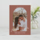 Invite a sus invitados a su boda con esta sencilla y moderna invitación de guardar la fecha de color terracota. La foto en la tarjeta se puede cambiar a la suya. Esta invitación de guardar la fecha es perfecta para cualquier temporada.