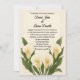 Una fusión atemporal de romance y gracia moderna, esta invitación presenta un despliegue impresionante de lirios de cala en un diseño limpio, que proporciona espacio para tus detalles personalizados. La parte trasera muestra una foto completa, perfecta para capturar un momento que cuenta tu historia de amor en un marco elegante.