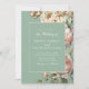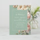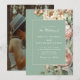 Una invitación de boda romántica en color verde salvia que presenta flores de peonía exuberantes combinadas con tu foto de compromiso personalizada. Este diseño botánico combina peonías de color rosa suave con una estética de jardín cálido, creando un anuncio profundamente personal y elegante.