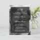 Estas invitaciones de boda modernas y minimalistas presentan su propia foto que cubre completamente el fondo. Una superposición negra transparente contiene todo el texto de su invitación de boda, así como sus iniciales, y su monograma también aparece en la parte posterior.