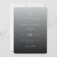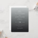 Esta elegante invitación de boda presenta un diseño minimalista con un fondo gris degradado que transita de claro a oscuro. La tipografía serif limpia añade un toque clásico, mientras que la disposición centrada garantiza claridad y sofisticación. Perfecta para celebraciones formales, esta invitación transmite un ambiente atemporal con su simplicidad refinada y amplio espacio negativo. Los elementos personalizables te permiten personalizarla sin esfuerzo, lo que la hace ideal para tu día especial.