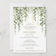 Elegante y atemporal, esta invitación de boda presenta una delicada guirnalda de vegetación en acuarela que cae en cascada desde la parte superior, creando un estética natural y romántica.