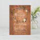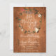 Con una guirnalda floral rústica de flores sobre un fondo de madera vintage, esta invitación de boda botánica boho se puede personalizar con la información de su día especial de boda. Con un bonito patrón de margaritas en el reverso. Diseñado por Thisisnotme©