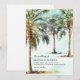 Di "Sí, acepto" a estas hermosas invitaciones de boda de destino de verano! Con un fondo azul teñido desvanecido, palmeras tropicales pintadas al agua y delicadas luces de cuerda, estas plantillas de invitaciones elegantes te ayudarán a crear la papelería perfecta para enviar a tus seres queridos y hacerles saber sobre el gran día.