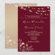 Elegante invitación de boda burgundy con luces de cuerda románticas, encaje floral dorado rosa y tipografía de letra moderna. Una opción perfecta para bodas rústicas de otoño o invierno, este diseño aporta calidez y encanto a tu celebración. Totalmente personalizable con nombres, fecha y detalles del lugar.