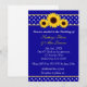 Invitación de boda con lunares y girasoles azul marino. Elija personalizarla para agregar su información. Elimine un área de texto para dejarla en blanco.