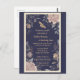 Presentamos la invitación de diseño de boda Moth, Rose & Thistle, una mezcla de elegancia atemporal y encanto caprichoso. Con un sofisticado fondo azul marino profundo enmarcado por un borde beige claro, esta invitación está adornada con ilustraciones intrincadas de rosas y cardos, complementadas con una representación única de una polilla cerca del centro superior. Los motivos florales crean un marco romántico y natural, lo que hace que este diseño sea perfecto para parejas que buscan un toque distintivo y refinado para su día especial. Personalice el área central con su texto personalizado para hacer que esta exquisita invitación sea única.