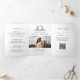 Esta elegante invitación de boda de tres solapas presenta caligrafía refinada y tipografía moderna en un diseño limpio y minimalista. El delicado monograma de la cresta botánica añade un toque romántico atemporal mientras mantiene el diseño general chic y sofisticado. El formato de tres solapas proporciona un amplio espacio para incluir detalles de la ceremonia, cronograma de la boda, información del lugar, iconos y un práctico código QR que enlaza con el sitio web de la boda. Una hermosa sección de fotos en la parte posterior añade un toque personal, lo que hace que este diseño sea perfecto para celebraciones modernas, clásicas o formales. Estilosa, práctica y cuidadosamente diseñada, esta invitación permite a las parejas compartir toda la información esencial de la boda en una elegante pieza de papelería.