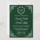 Invitación de boda con monograma ornamentado verde