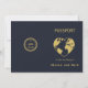 Invitación de boda con pasaporte – Tarjeta de viaje en azul marino y dorado | Destino
