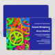Una invitación de boda con un ambiente de los sesenta. Frescos signos de paz en colores neón brillantes y vibrantes con todos los colores del arcoíris.