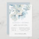 Hermosa invitación de boda con arreglo floral en acuarela azul pastel aireado, diseño de tipografía gris y azul moderno y chic. La parte trasera de la tarjeta presenta un color sólido que se muestra en azul pastel, que se puede personalizar.