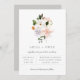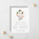 Arreglo floral de acuarela elegante rosa sonrosado, blanco, violeta y naranja, invitación de boda. Diseño de tipografía gris moderno y chic. La parte trasera de la tarjeta presenta un color sólido que se muestra en gris.