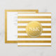 Invitación de boda con rayas de lámina dorada y blanca. Personalice para cualquier evento.